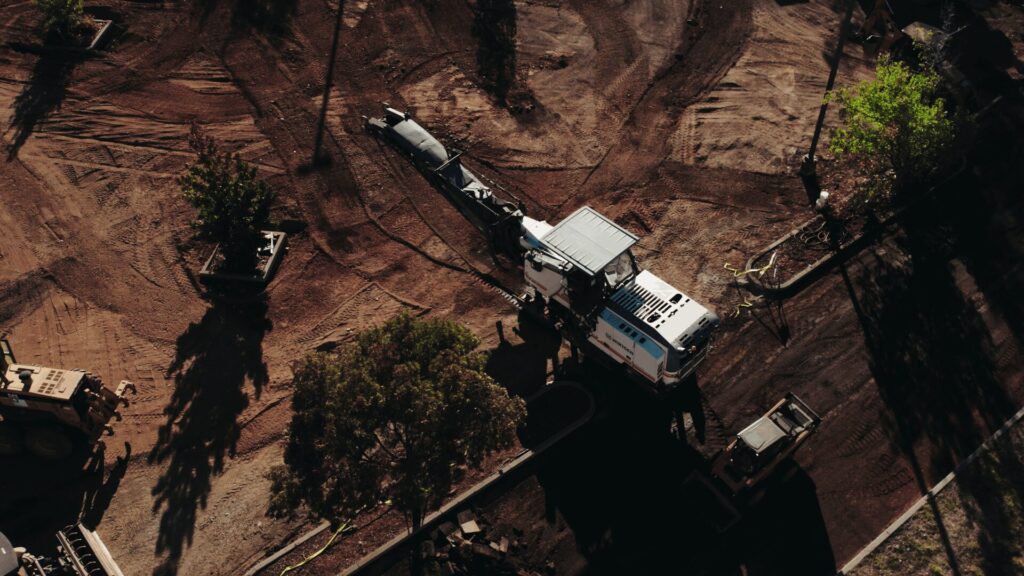 The DRYCO team treated and mixed 5% cement to a depth of 12″ over the entire designated area to stabilize and dry up sub-grade. Moisture in sub-grade can lead to cracks and potholes, so this is an important step that improves the longevity of roads and parking lots. We also added fine grades to the soil to prepare the surface for paving.