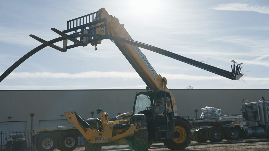 The team also had to excavate through base rock for concrete curbs, then off-haul the material.