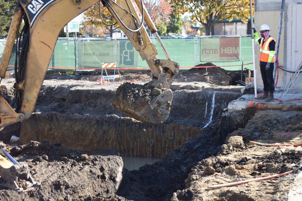 - Excavate for 8″ section at new asphalt paving, concrete walkways, and Valley gutter