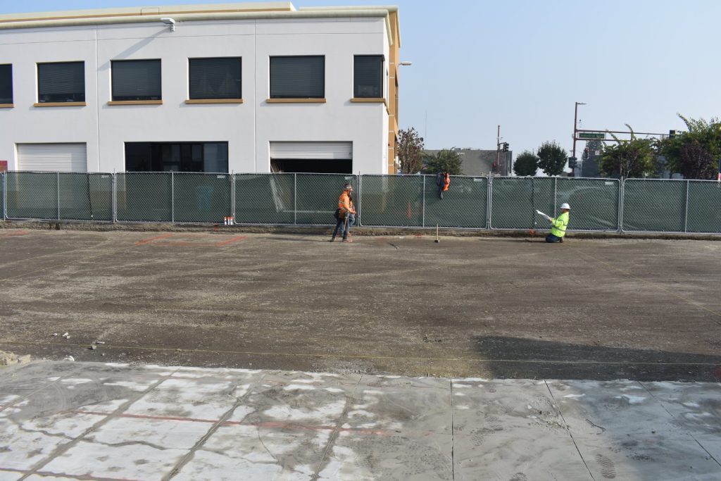 - Remove areas of asphalt where new planters, sidewalks, valley gutter, patio, trash enclosure and building pad is to be built