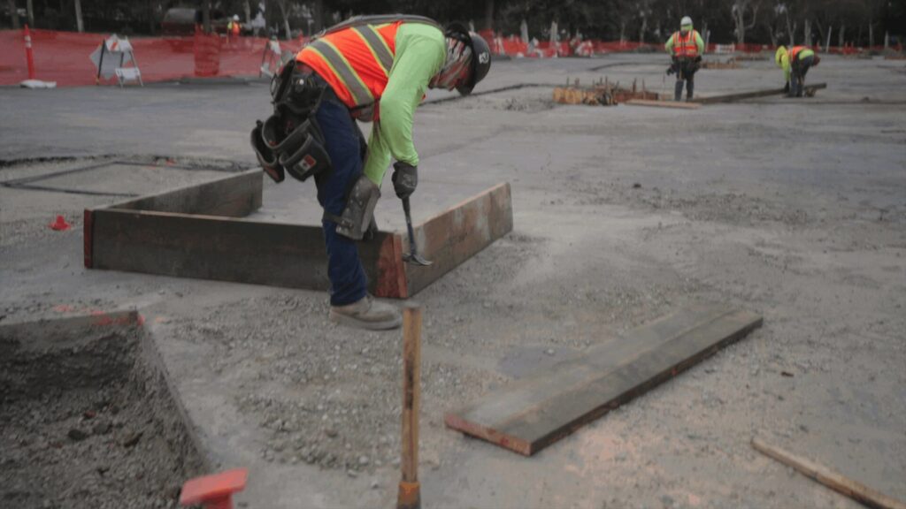 The DRYCO team used a trencher to trench subgrade to create a 6” minimum trench for 2 sk slurry. We poured 2 sk slurry in the trench, 20” deep. From there, we formed and poured a new curb on top of the slurry.